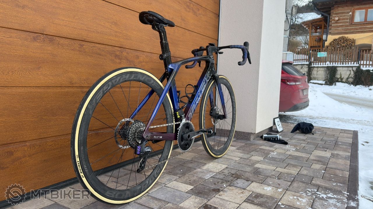 Oproti sériovej špecifikácií veľa zmien a doplnkov. Kolesá Bontrager Aeolus XXX 4, elektrické radenie SRAM. Prešmyk RIVAL, kľuky RED, prevodník FORCE 48/35 s powermetrom QUARK, aj 46/33 bez PM, prehadzovačka FORCE D1, kazeta 10-36. K bicyklu originál časovkárska hrazda. 3D tlačený držiak na Garmin radar, K-EDGE držiak na Garmin 1050. November 2025 výmena stredového zloženia a hlavového zloženia.
